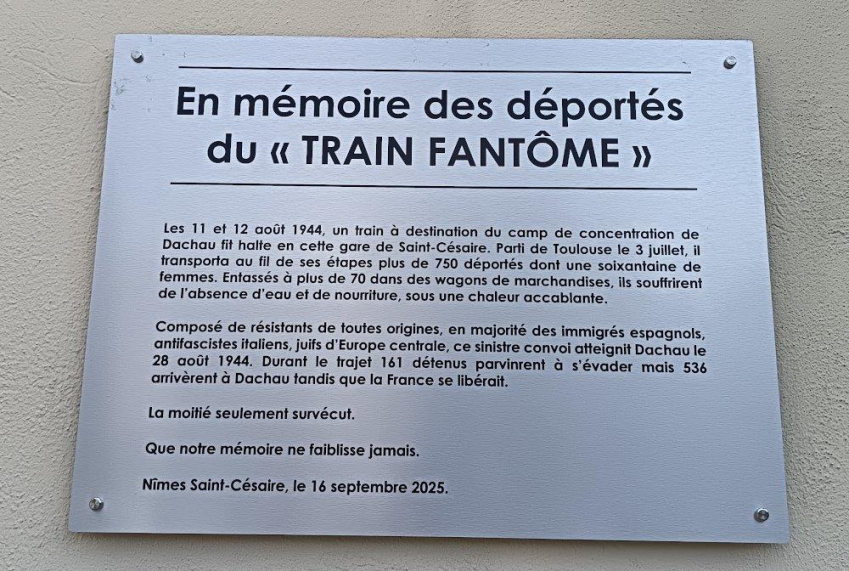 Le 16 septembre 2025, devant la gare de Saint-Césaire, à Nîmes, a été dévoilée une plaque rappelant un événement poignant qui s'est déroulé durant la seconde guerre mondiale, et qui est connu sous le nom du "train fantôme".